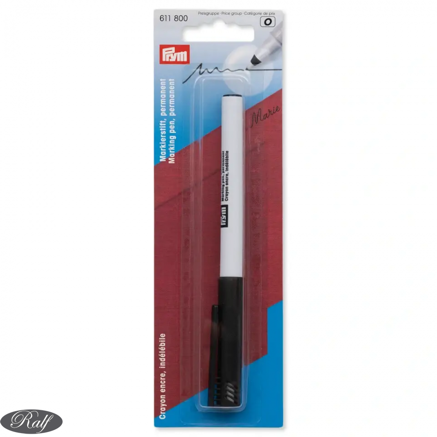 Marker permanent pentru materiale textile, rezistent la apa, cu grosimea varfului de scriere de 2 mm.