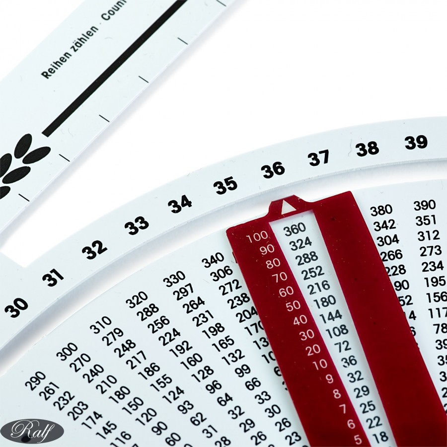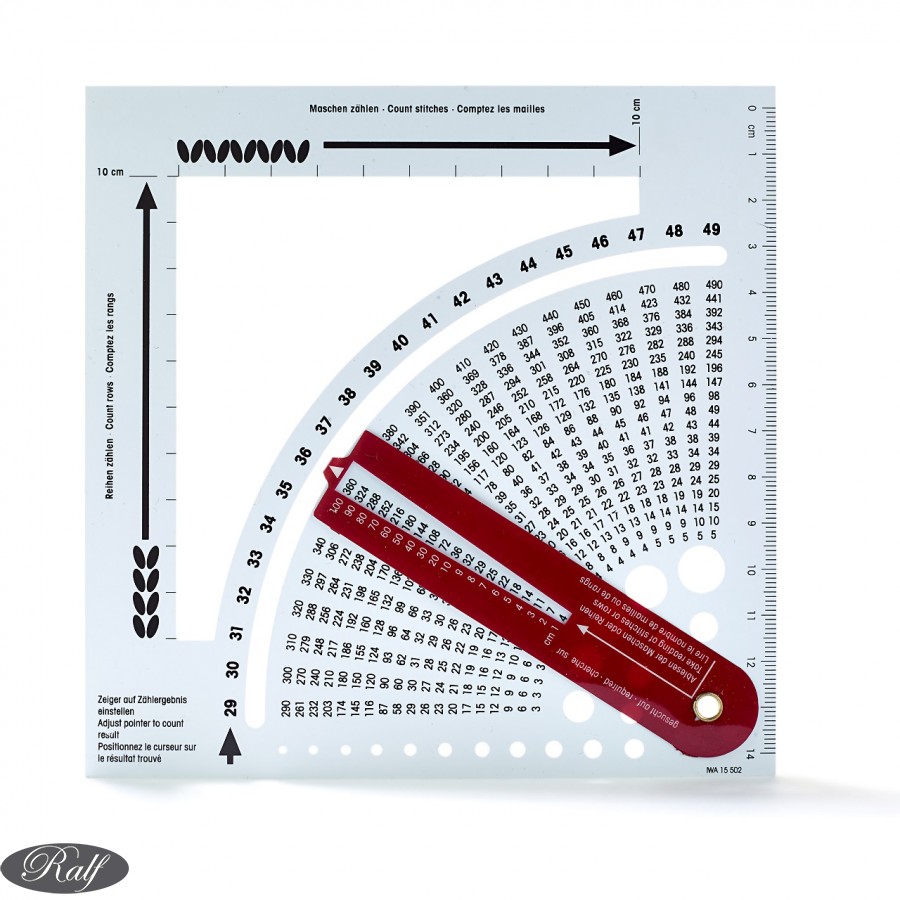 Uneori cand tricotam o piesa vestimentara se intampla ( daca nu ne-am notat undeva), sa uitam pe cate ochiuri am inceput lucrul, si cel mai adesea se intampla in cazul proiectelor lasate si reincepute dupa o perioada de timp; in asfel de situatii de bun ajutor ne este dispozitivul de calculat ochiuri. Respectand instructiunile de folosire, indiferent de grosimea firului putem calcula numarul de ochiuri pe o anumita distanta si asfel in urma unor masuratori putem continua cu diferitele parti componente (maneca, spate, crac de pantalon etc. ) si asfel finalizand un proiect care a fost inceput cu mult timp inainte.