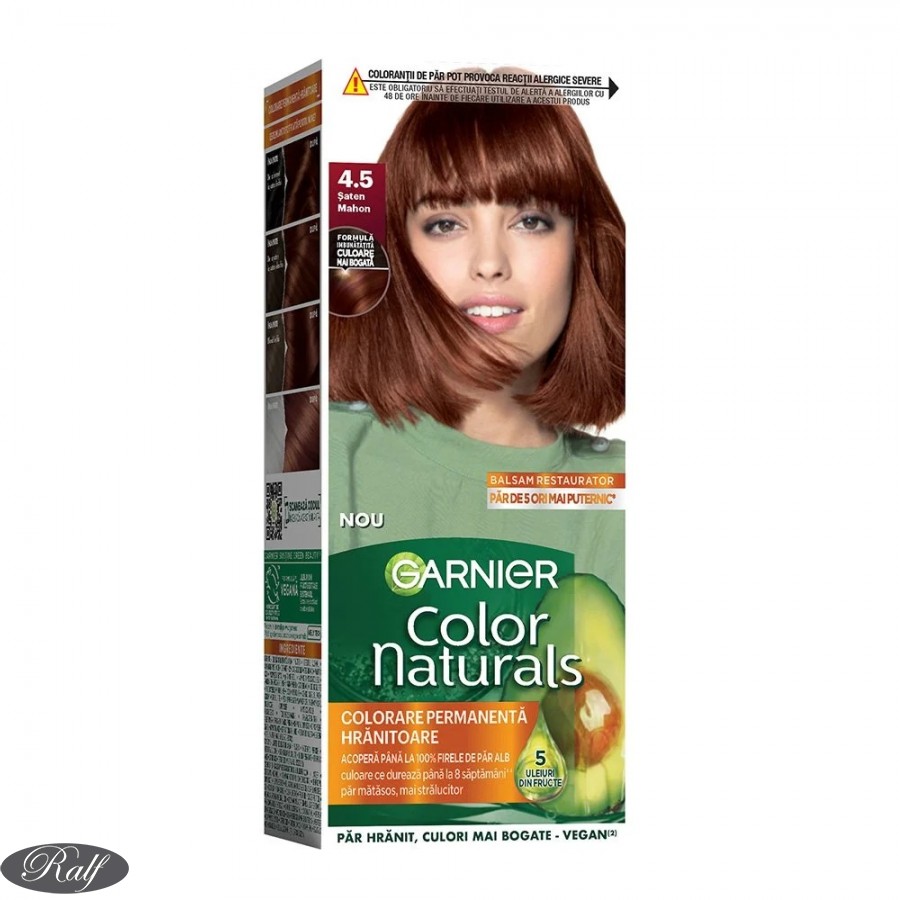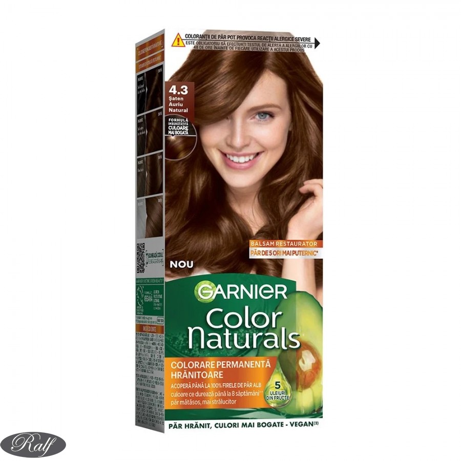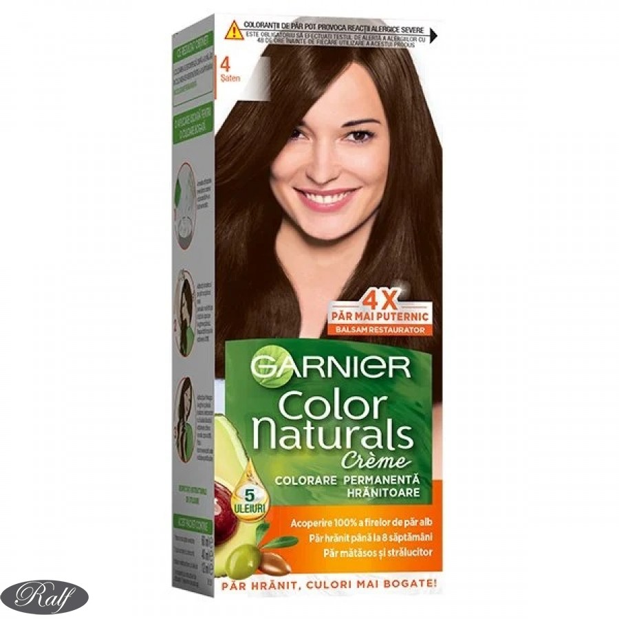 Formula unica Garnier Color Naturals, imbogatita cu 3 uleiuri nutritive - Masline, Avocado si Karite - hraneste intens, netezeste fibra capilara si creeaza o bariera de protectie impotriva agresiunilor externe.