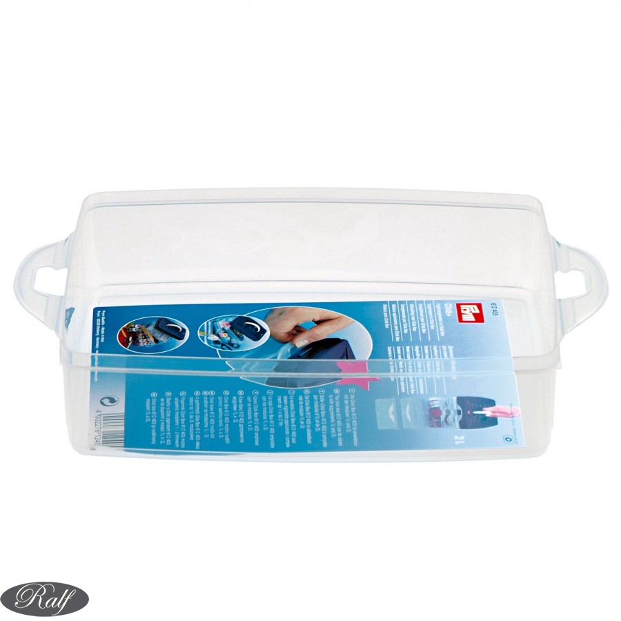 Aceste cutii practice cu sistem de inchidere cu clic ofera mult spatiu pentru coasere, artizanat si echipament de hobby pe trei nivele. Sunt realizate din plastic transparent,care se fixeaza fiecare cu ajutorul elementelor laterale prin clicuri. Capul albastru al cutiei de lucru este fabricat din plastic iar manerul alb poate fi pliat pentru a fi transportat si adaptat la inaltimea capacului atunci cand este retras. Cutia de lucru cuprinde trei module cu o capacitate volumetrică de 1 litru sau de 2 litri. Datorită elementelor sale de fixare prin clic, caseta poate fi marita in mod convenabil cu ajutorul modulelor de extensie de 1 și 2 litri și astfel să fie extinsa exact in functie de necesitati. Fireste, modulul de expansiune poate fi utilizat si fara un capac pentru depozitarea instrumentelor și a accesoriilor de hobby.