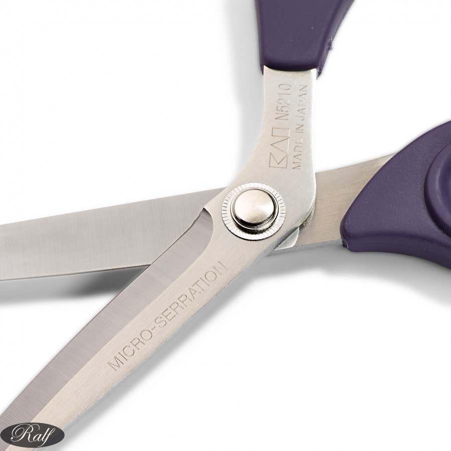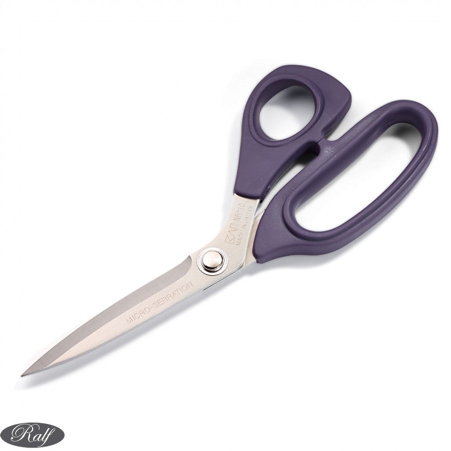 Foarfeca de croitorie cu maner din plastic moale.