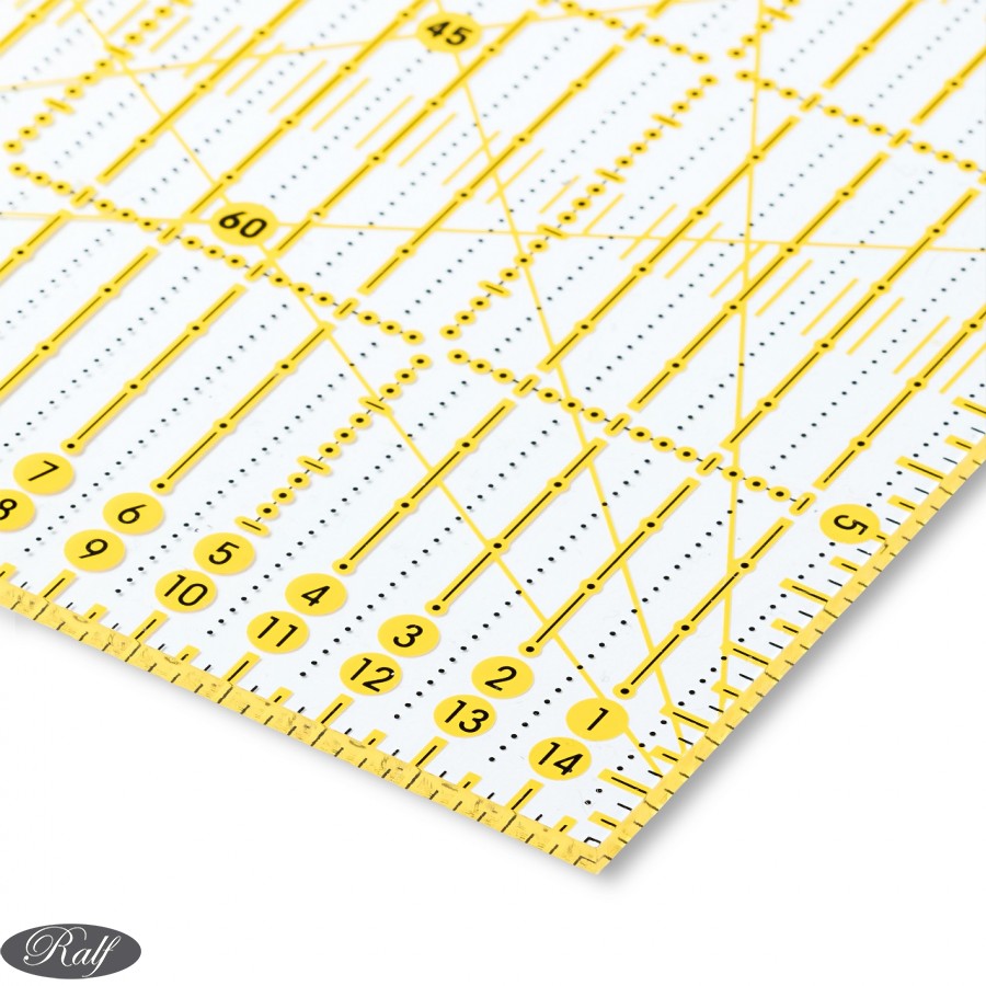 Caracteristici: Rigle pentru Patchwork si Quilt gradate in cm. Cu ajutorul acestei rigle puteti taia unghiuri de 30°, 45° si 60°. Aceasta rigla este potrivita pentru a taia franjuri de 0,5 cm latime. Rigla pentru Patchwork cu marime practica pentru a putea fi transporta cu usurinta oriunde. Rigla se poate utiliza pentru toate tipurile de taieturi secundare.