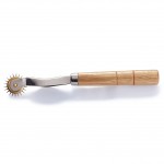 Roată de trasare cu maner din lemn și roată dințată extrem de ascuțită din metal.