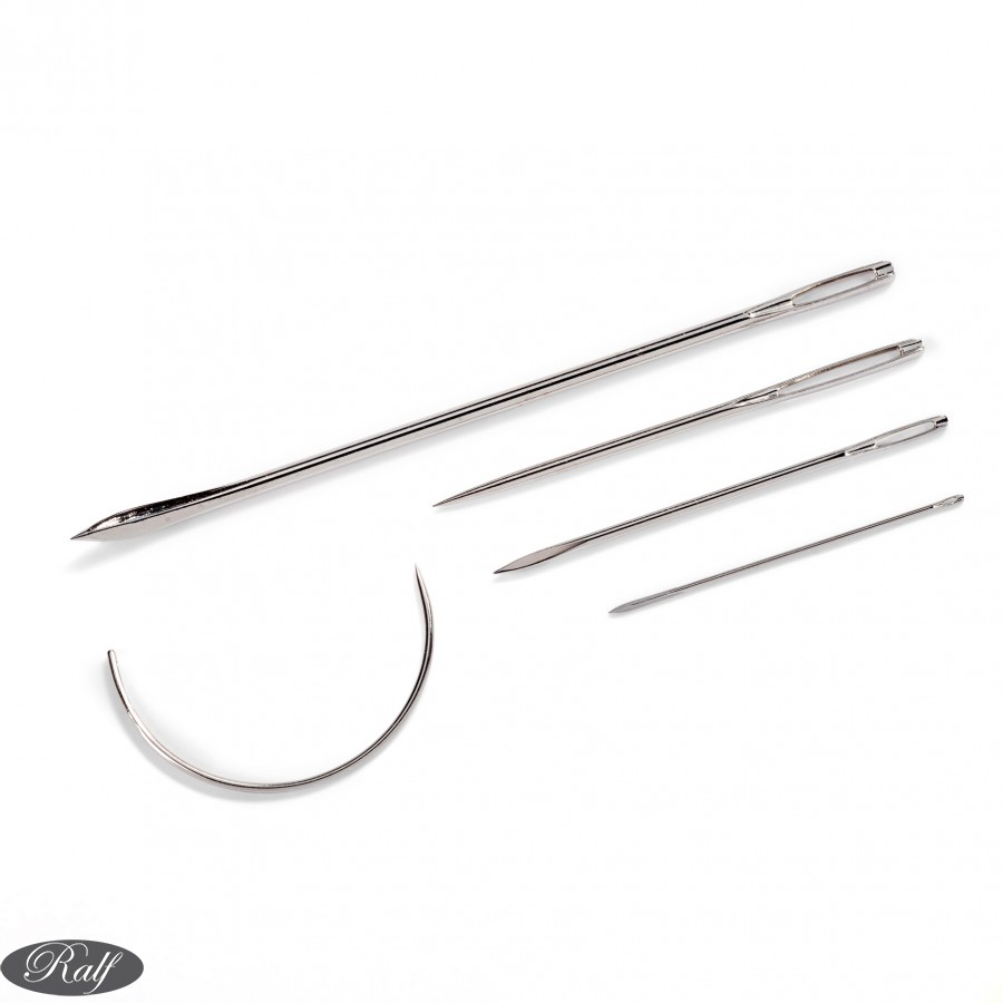 Detalii produs: Dimensiune ace:- ac de cusut pentru materiale piele (leather needle): 4 cm;- ac de cusut pentru panza (sail needle): 5.5 cm; - ac de cusut pentru covoare/carpete (carpet needle): 6 cm;- ac de cusut pentru saci (sack needle): 10.5 cm;- ac de cusut tapserie (upholster needle): nr. 2.