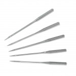 Setul coontine 5 ace de masina de cusut, cu varf rotund pt protejarea tesaturilor, dupa cum urmeaza: 2 ace mar. 80, 2 ace mar. 90 si 1 ac marimea 100.
