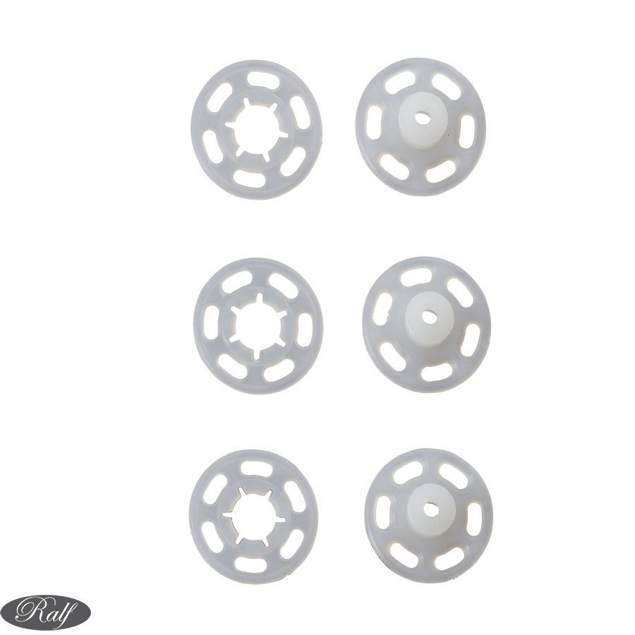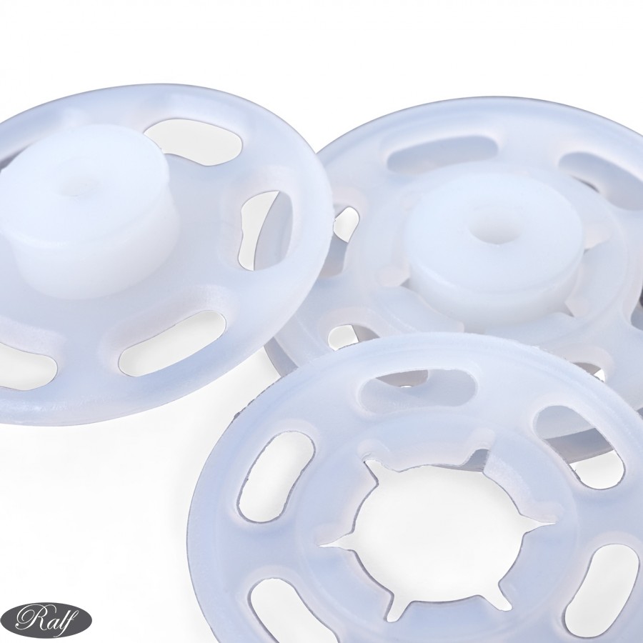 Set capse de cusut din plastic transparent care nu se sparge, format din 18 capse.