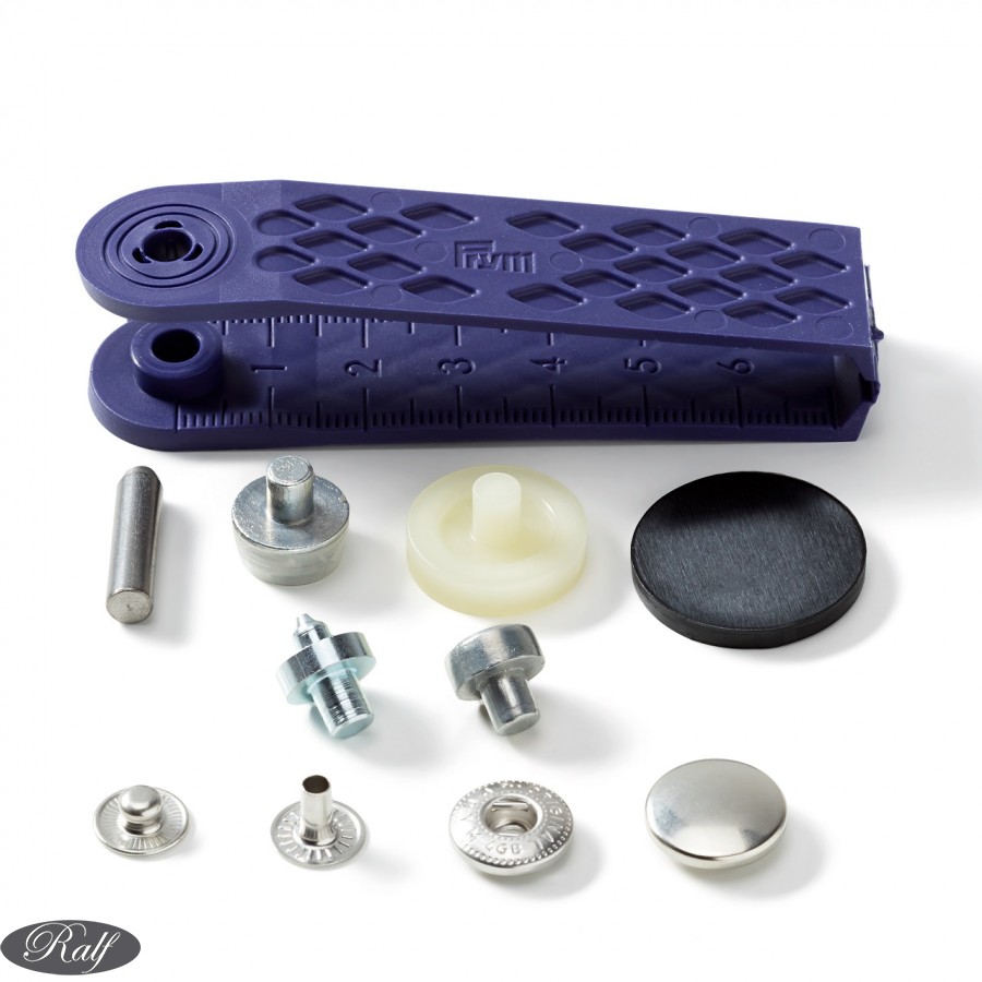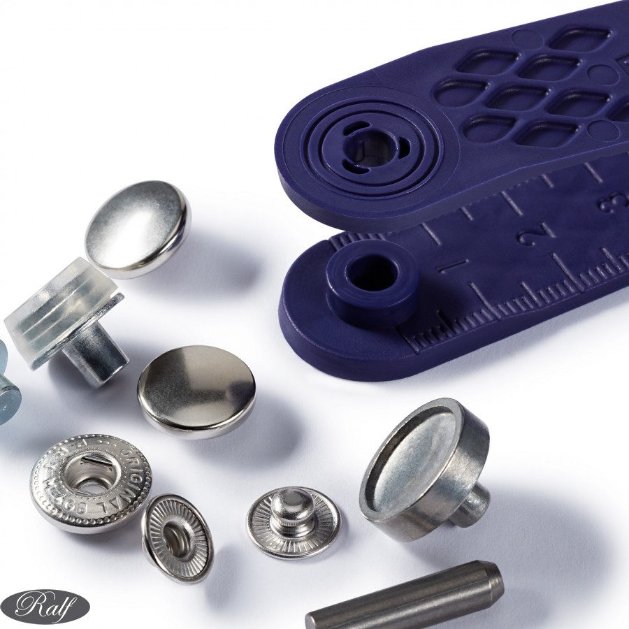 Setul contine si suportul/unealta pentru aplicarea pe material a capselor.