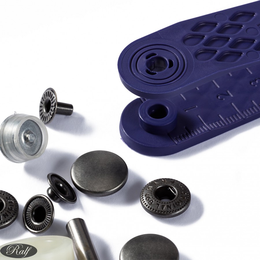 Setul contine un dispozitiv pentru fixarea capselor pe material.